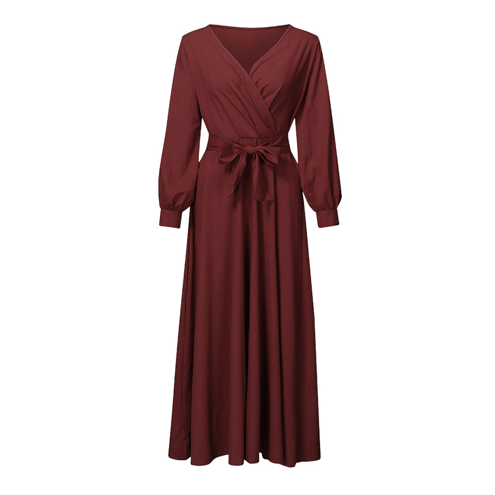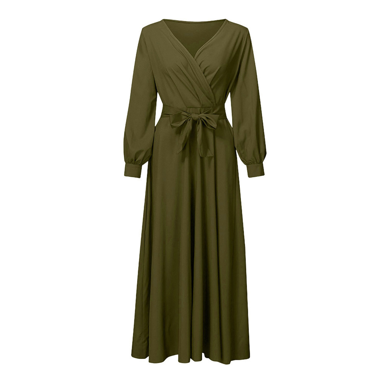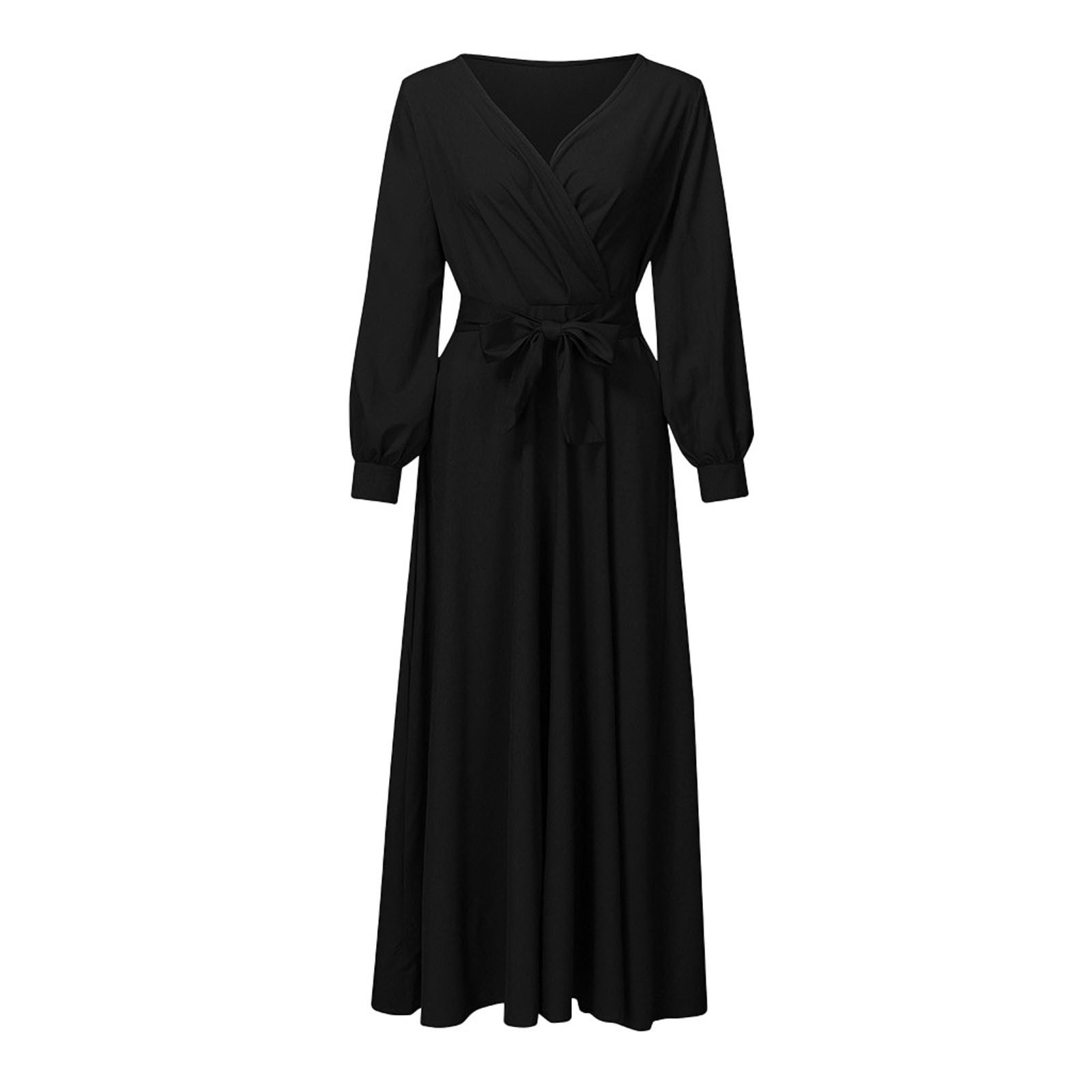 Summer V-neck Long Sleeve Solid Color Bandage Maternity Elegant Dress Long Skirt